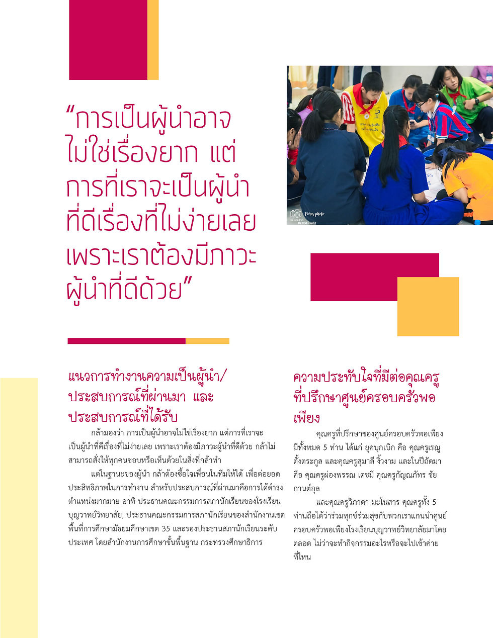 พลกฤต เทพนามวงค์ (กล้า)ครอบครัวพอเพียง19 มี.ค. 2564ยาว 1 นาทีนายพลกฤต เทพนามวงค์ (กล้า)- ศูนย์ครอบครัวพอเพียง โรงเรียนบุญวาทย์วิทยาลัย จังหวัดลำปาง- ตำแหน่งประธานรุ่นที่ 2 ประจำปีการศึกษา 2561